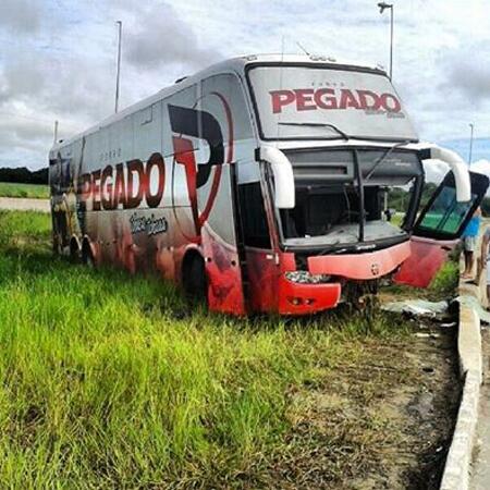 Segundo a assessoria de imprensa da banda, o motorista Marcos Pordeus que conduzia o ônibus perdeu o controle do veículo por volta das 3h no trevo de saída para o município de Mamanguape e acabou se chocando com uma pequena mureta. Marcos sofreu fratura em uma das pernas, foi socorrido por uma equipe do SAMU e levado ao Hospital de Emergência e Trauma Humberto Lucena em João Pessoa. O motorista passa bem.